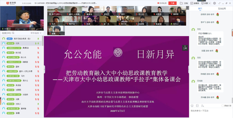 5月5日,“把劳动教育融入大中小幼思政课教育教学——天津市大中小幼思政课教师‘手拉手’集体备课会”在优学院直播课堂平台举行。人民网公开课总监盛卉、yl12311线路检测党委书记付洪、院长刘凤义出席会议,来自甘肃省庄浪县通化镇中心小学、天津市蓟州区山倾城小学、天津市蓟州区第一小学、天津市蓟州区第三幼儿园、天津市第一中学、天津市第二十中学、yl12311线路检测的14位教师参会并做主题发言。会议由yl12311线路检测副院长孙寿涛主持。