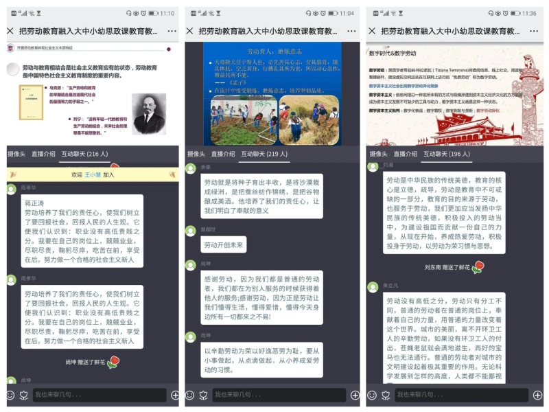 备课会上,参会教师围绕劳动教育中思政课教师的作用、大中小幼劳动教育教学的具体实践与做法、新时代劳动教育提出的具体背景、科学内涵、育人功能、价值认同,以及大中小学劳动教育一体化建设探索等主题开展深入研讨。