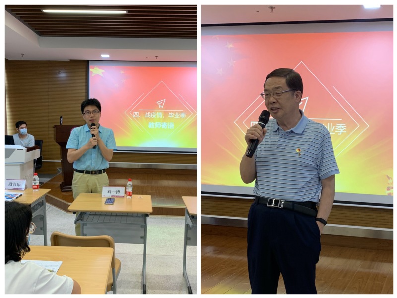 活动中,参会老师为毕业生党员们送上寄语。寇清杰谈到,作为一名学生党员要时刻牢记自己的责任和使命,实现两个百年奋斗目标离不开广大青年的努力,同学们正值奋斗时光,要抓住机遇迎接挑战。刘一博谈到,在抗击疫情的特殊背景下,广大毕业生要勇于扎根基层,服务基层,践行为人民服务宗旨,勉励大家在新的岗位依靠群众服务群众。殴喜乐、陈永刚、高田琪也为毕业生党员送上寄语。