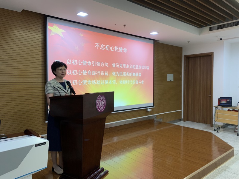付洪教授为毕业生党员做“不忘初心担使命”主题党课。她结合疫情防控、学生成长和学院发展,从“以初心使命引领方向,做马克思主义的坚定信仰者”“以初心使命践行宗旨,做为民服务的奉献者”“以初心使命练就过硬本领,做新时代的奋斗者”三个方面展开讲述。她指出,作为马院的学生党员,不管走到哪里、做什么工作,都必须坚持“学马”“懂马”“信马”“用马”,自觉加强马克思主义理论学习,做坚定的马克思主义信仰者。同时,她充分肯定了马院毕业生党员为抗击疫情所做的努力和奉献,要求毕业生党员要做为民服务的表率,与人民一起奋斗,一起前进,一起梦想。她以“信仰”、“奉献”、“奋斗”为结,希望毕业生党员始终牢记初心使命,厚植爱国情怀,听党话、跟党走,充分发挥党员的先锋模范作用,做新时代的奋斗者。