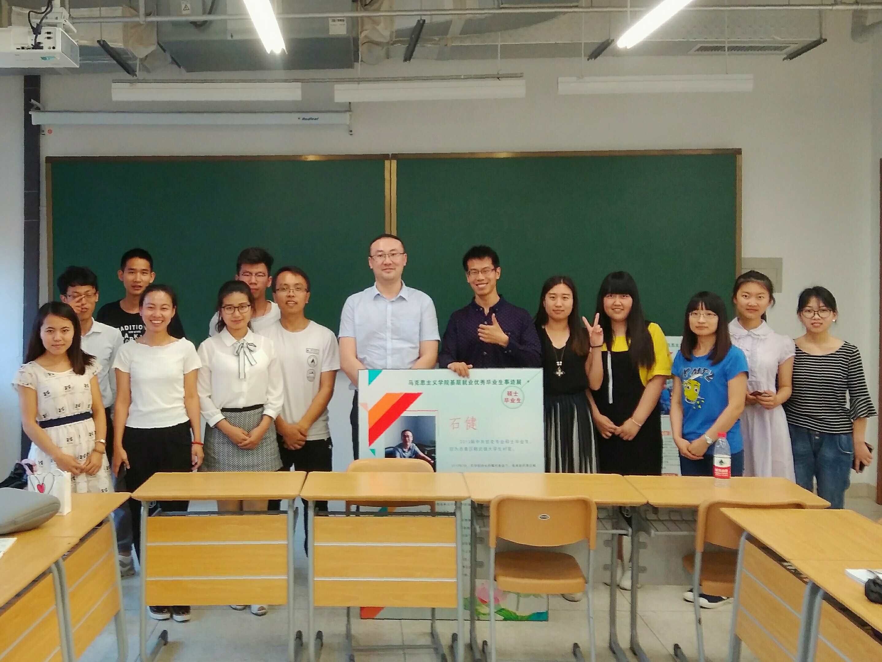 主讲人石健是马克思主义学院中共党史专业2012届硕士研究生座谈伊始,他就为在座的师弟师妹们介绍了自己大学生村官的工作经历,并坦言正是这次基层锻炼让他感受到了为什么要到农村中经风雨、见世面,怎样才拜人民为师他还勉励师弟师妹定要紧握住宝贵的求学时光,真正在理论研习、校园实践中做强自己