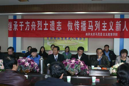 学院2005级本科生白杨同学也谈了自己的感悟,她说:“我们的母校即将迎来九十华诞,回首南开的校史,她培养了万人敬仰的开国总理周恩来,也培养了以于方舟烈士为代表的一批热血青年。他们甘为祖国、为民族、为人民奉献自己年轻的生命,作为南开人,我为自己拥有如此优秀的校友而自豪!”