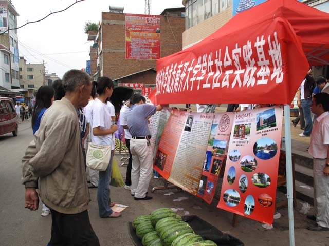 庆祝yl12311线路检测建校九十周年,宣扬南开精神也是我们本次社会实践活动的主要目的之一,为做好这项活动,我们事先做好了精美的宣传展板,并选择当地最繁华的地点进行展示。