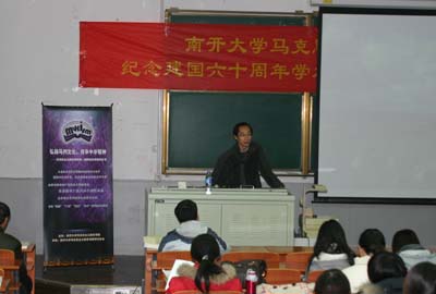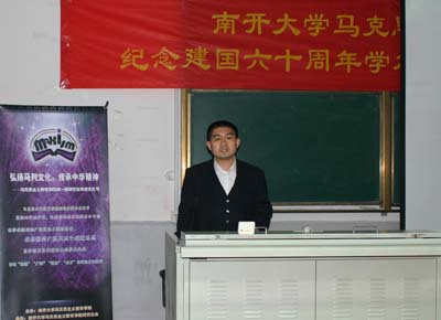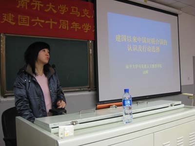 随后,“庆祝新中国成立六十年周年学术研讨会”正式开始。来自我院的8位论文作者依次进行了学术报告,他们分别是张健:《从社会主义到中国特色社会主义》、武东生:《论马克思的意识形态观》、丁军:《建国以来我国高校思想政治理论课发展的回顾与思考》、季健霞《建国以来党对社会主义本质理论认识的发展和深化》、赵美玲:《新中国成立60年来我国对非公有制经济的认识及政策变化》、祖金玉:《建国以来中国共产党党内民主发展脉络及其启示》、高辉:《建国以来中国对联合国的认识及行动选择》、尹倩:《始终不渝走和平发展道路》。学术报告内容丰富、主题鲜明、语言生动,在座的师生受益颇深。