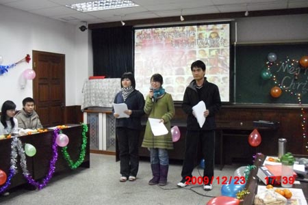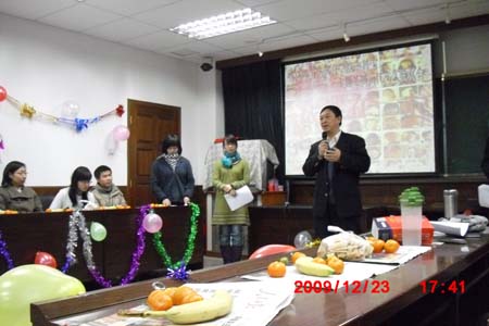 1223,学院多功能厅内欢歌笑语,热闹非凡,我院本科生在此举行一年一度的新年联欢晚会。院长赵铁锁、副书记纪亚光、副院长陈平应邀出席学院2010年元旦新年联欢会。学院思想政治教育专业20082009级班导师孟锐峰、盛林,团委书记马亚男也参加到联欢活动中。赵铁锁院长在新年贺辞中勉励青年学生珍惜宝贵学习时光,虚心向学,勇于实践,把自己培养成有信仰、有学养、有教养的高素质人才。在联欢会温馨热烈的氛围中,陈平副院长即兴高歌一曲,悠扬的歌声赢得学生的阵阵喝彩和掌声。联欢会上,200720082009级学生自编自演了多个精彩节目,其中既有反映大学生活的轻松音乐剧,也有传递美好祝愿、抒发人间至爱的手语节目,更有用方言串联起来的说唱节目……大家在展示才艺的同时,也收获了来自师长和同窗的深深祝福。