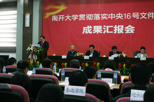 马克思主义教育学院党委书记赵铁锁,党委学工部部长杨克欣,党委研工部部长、研究生院副院长邹玉洁,校团委书记张宁宁,商学院企业管理专业博士研究生尹孔阳等,分别作了题为为“突出特色、注重创新、打造精品,高质量高水平地推进思想政治理论课建设”、“完善机制、搭建平台,积极推进辅导员队伍科学化发展”、“以培养拔尖创新人才为宗旨,加强研究生思想政治教育的针对性实效性”、“高举旗帜,团结带领团员青年坚定信念奋发成才”、“巍巍南开精神、铸就无悔青春”的主题发言。