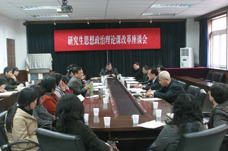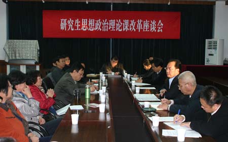 本次座谈会的主题是围绕教育部决定今年在全国19所高校进行研究生思想政治理论课改革试点工作。yl12311线路检测作为试点高校之一,博士生课程“中国马克思主义与当代”、“马克思主义经典著作选读”位列其中,马克思主义教育学院承担此次改革的重任。如何搞好这次课程改革,是全体马列人当前需要研讨的大事。