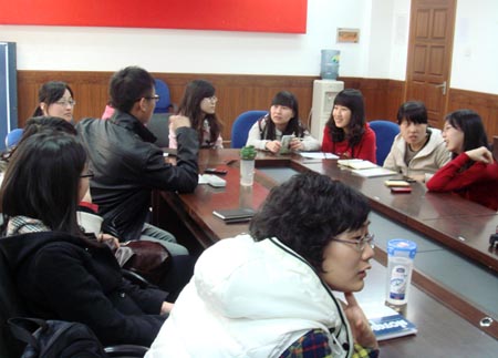 副书记王旭同学代表国外马克思主义和科学社会主义专业党小组发言。她说,她个人一直比较关注房价问题,在看到温总理回答记者关于房价问题的回答时,她感觉到了总理是想人民之所想,急人民之所急,真正站在老百姓的立场上,去解决问题。同时,她们党小组成员认为从这次的两会中,看到了政府想要将改革开放的成果惠及人民的决心和力度。从稳定物价、房价到扩大社会福利,再到大力发展教育,都让大家对祖国的未来和个人的未来更加有信心。