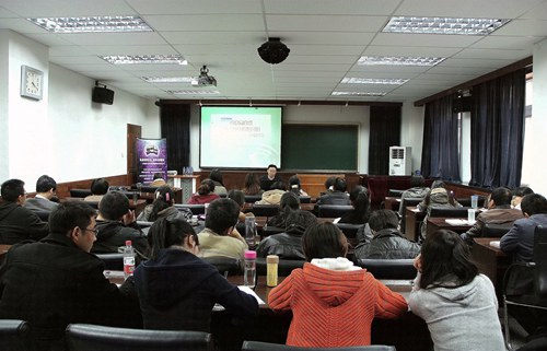 随后,学院研究生会主席金梦介绍了本届研究生学术文化节拟开展的各项活动,希望广大的研究生朋友们能够利用好这个平台,如胡锦涛总书记所号召的那样“坚定理想信念,增长知识本领,锤炼品德意志,矢志奋斗拼搏,在人生的广阔舞台上充分发挥聪明才智、尽情展现人生价值。”