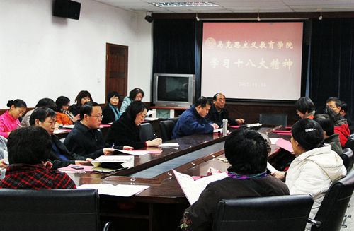 11月16日,马克思主义教育学院全院教师在范孙楼218集中学习了胡锦涛同志在中国共产党第十八次全国代表大会上作的报告。