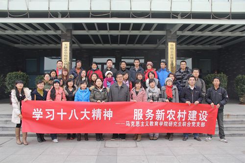 2012年11月8日中国共产党第十八次全国代表大会在北京胜利召开。十八大报告特别强调,中国特色社会主义事业是面向未来的事业,需要一代又一代有志青年接续奋斗。广大青年要积极响应党的号召,投身中国特色社会主义伟大事业中,让青春焕发出绚丽的光彩。因此,为了深入学习十八大精神,发挥青年党员的先锋模范作用,切实增强基层党组织活力,马克思主义教育学院研究生联合党支部以“学习十八大精神 服务新农村建设”为主题走进社会主义新农村,进行实地走访考察。