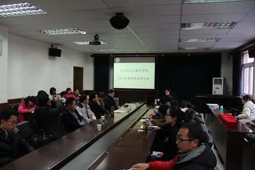 12月18日,马克思主义教育学院2013年度评优表彰会在范孙楼举行。学院院长纪亚光,副书记副院长马亚男,思想政治教育系主任傅佩缮,本科生班导师余一凡、肖光文、陈文旭,辅导员陈永刚、袁婧及学院本、硕、博学生代表参加了总结表彰会。