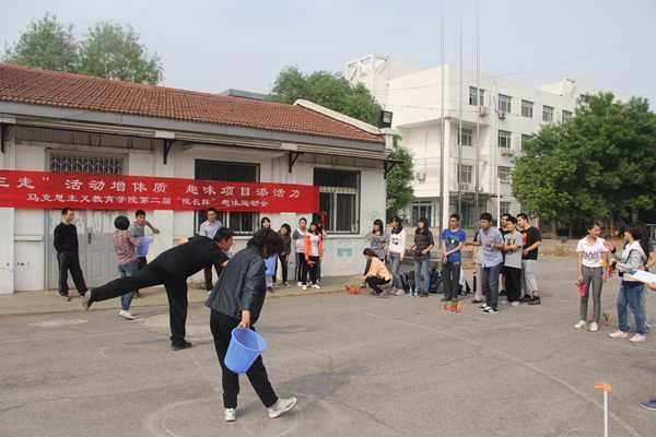 4月27日,马克思主义教育学院举办“‘三走’活动增体质趣味项目添活力”--第二届“院长杯”趣味运动会。学院党委副书记兼副院长马亚男、高晓燕、余一凡、陈永刚等老师与学生一起参加了运动会。