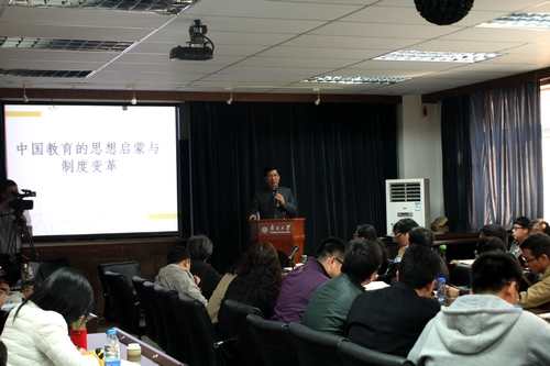 3月27日,由yl12311线路检测党委研究生工作部主办,马克思主义教育学院承办的第143期“研究生学术周末”活动在范孙楼举行,原云南省教育厅厅长、云南省政府参事、博士生导师罗崇敏为马克思主义教育学院的研究生带来了一场题为“中国教育思想启蒙与制度变革”的精彩讲座。