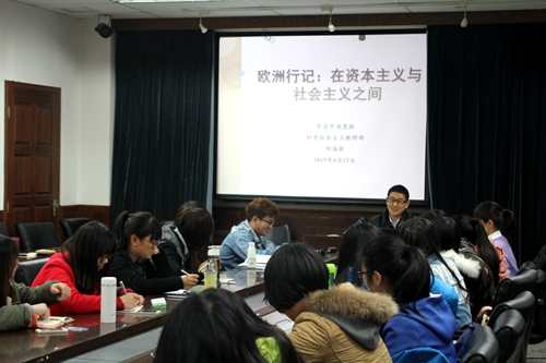 4月12日,中共中央党校青年教师何海根做客马列学院“悦读·思考·对话”本科生读书沙龙活动,讲述“欧洲行记:在资本主义和社会主义之间”。学院2014级本科生、党建研修班的同学参加了活动。