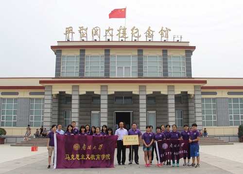 7月27日上午,马克思主义教育学院暑期社会实践队来到山西大同,开展 “重温山西抗战红色历史 践行社会主义核心价值观”主题调研实践活动。实践队第一站走进平型关大捷纪念馆,并与纪念馆签约共建yl12311线路检测学生社会实践基地。纪念馆副馆长吕民忠、学院副教授薛晓斌、院团委书记陈永刚与17名2014级思政学子共同参加了签约揭牌仪式。