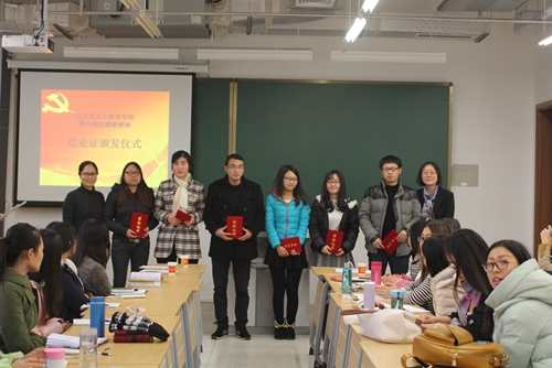 活动伊始,主持人杨宁以简单凝练的语言介绍了党建研修班的相关情况,培训部、考评部、实践部等三个主要职能部门的负责人也分别向学员详实的介绍了研修班的课程安排、考评机制和实践活动。为了让学员对研修班有更加深入地了解,2014级硕士研究生党支部书记陈帅带领着新老学员一起回顾了第四期党建研修班相关活动的开展情况。之后,学院党委书记邢丽芳和副书记马亚男为第四期结业学员颁发了结业证书,并与结业学员合影留念。开班仪式结束后,研修班进行了本期第一场学习报告会。