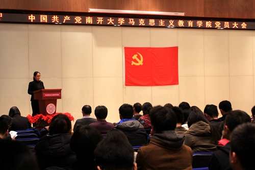 大会在雄壮的国歌声中正式开始。邢丽芳代表本届党委会作了题为“求真务实 勇于创新——开拓具有南开特色的马克思主义理论教育之路”的工作报告。报告全面总结了学院自2009年以来,精诚团结,求真务实,抢抓机遇,创新发展所取得的一系列丰硕成果,提出了在新的形势下学院今后主要工作目标和任务。