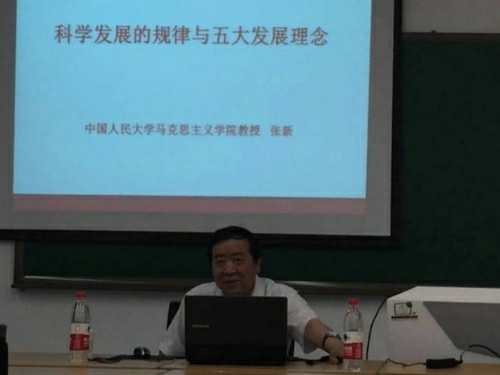 5月26日,中国人民大学马克思主义学院张新教授做客yl12311线路检测,讲授“五大发展理念与科学发展的规律”。学院杨谦教授主持,刘娟教授及50余名学生聆听了报告。