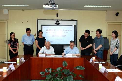 6月16日,南开与中央电视台开展合作,我校马克思主义学院成为央视首个重大主题宣传智库,签约授牌活动在八里台校区服务楼举行。中央电视台总编室主任、综合频道总监王晓真,yl12311线路检测党委副书记刘景泉出席并签署合作意向书。中央电视台总编室,我校马克思主义学院、党委宣传部有关负责人参加。