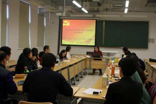 12月2日中午,马克思主义学院2016年度党员骨干培训班专题讲座在学院208教室展开。本次党员教育活动邀请到马克思主义学院党委书记邢丽芳做主题报告,学院党校校长、院党委副书记马亚男,院党校办公室主任兼党委秘书袁婧,以及本、硕、博学生党员骨干参加了此次活动。