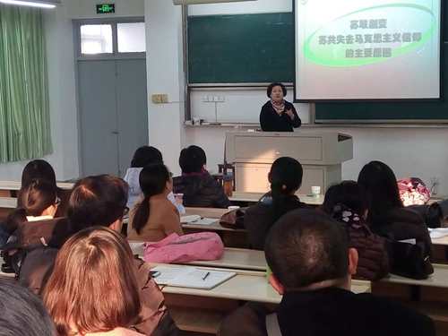 应嘉兴学院马克思主义学院的要求,杨谦教授作了题为“列宁主义的在马克思主义发展史中的地位、贡献和影响”的专题报告,丁军教授作了“苏联剧变的主要原因剖析”的专题报告,两个报告作为对十月革命胜利100周年的纪念和对苏联解体的反思,体现了南开学者的高水平研究,受到嘉兴学院马克思主义学院全体教师的高度评价。