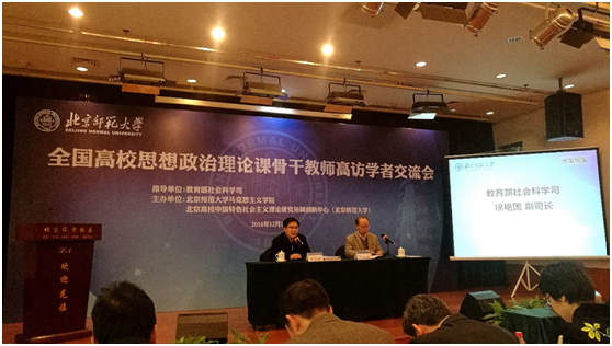 12月17日,全国高校思想政治理论课骨干教师高访学者交流会在北京召开,会议由教育部社科司、北京师范大学马克思主义学院及北京高校中国特色社会主义理论研究协同中心共同主办,社科司副司长徐艳国、调研员陈睿以及来自清华大学、北京大学、yl12311线路检测等全国11所高校马克思主义学院的负责人、项目管理人员及思政理论课骨干高访教师代表与会。副院长寇清杰、项目管理老师胡志辉及在我院研修的5位高访教师代表参加会议。