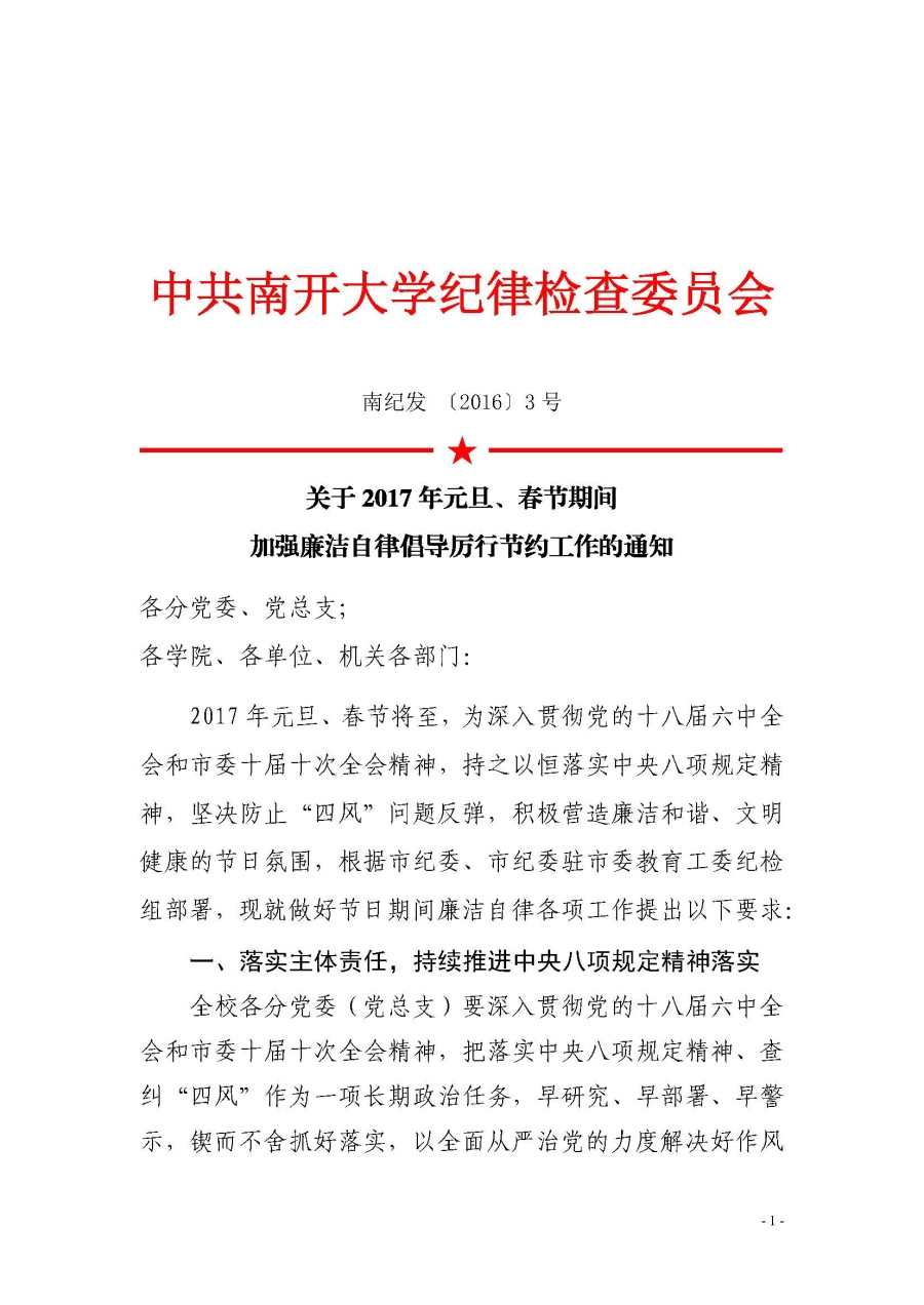 关于2017年元旦、春节期间加强廉洁自律倡导厉行节约工作的通知