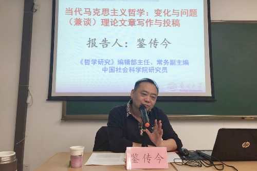 1月6日下午,yl12311线路检测走近中国名刊——邀请到《哲学研究》编辑部主任、常务副主编、中国社会科学院鉴传今研究员,在马克思主义学院作了一场主题为“当代马克思主义哲学:变化与问题的报告会。yl12311线路检测教授、博士生导师杨谦主持了本次讲座。参加报告的有马院师生和部分哲学院师生约60人。