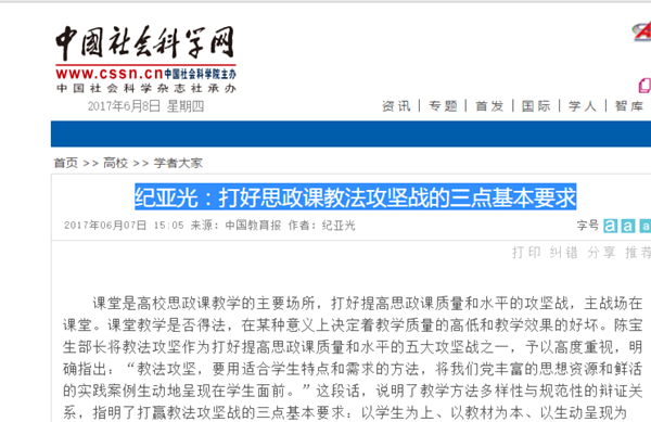 课堂是高校思政课教学的主要场所,打好提高思政课质量和水平的攻坚战,主战场在课堂。课堂教学是否得法,在某种意义上决定着教学质量的高低和教学效果的好坏。陈宝生部长将教法攻坚作为打好提高思政课质量和水平的五大攻坚战之一,予以高度重视,明确指出:“教法攻坚,要用适合学生特点和需求的方法,将我们党丰富的思想资源和鲜活的实践案例生动地呈现在学生面前。”这段话,说明了教学方法多样性与规范性的辩证关系,指明了打赢教法攻坚战的三点基本要求:以学生为上、以教材为本、以生动呈现为用,为打好思政课教法攻坚战指明了方向。