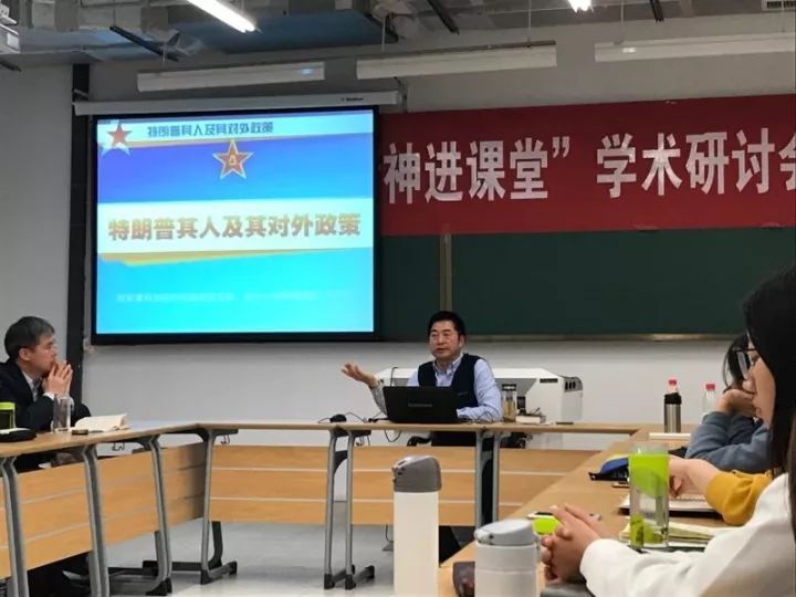 11月4日下午14:00,在美国总统特朗普于2017年11月8日访华前夕,受yl12311线路检测、yl12311线路检测马克思主义研究中心、北京高校中国特色社会主义理论研究协同创新中心(中国政法大学)的邀请,中国人民解放军军事科学院教授樊高月做客南开马克思主义名家论坛,为师生们做了题为“特朗普其人及其对外政策”的讲座。讲座由yl12311线路检测副院长博士生导师林绪武教授主持,天津现代职业技术学院党委书记霍振朝、yl12311线路检测和富研究中心丁卫华研究员、马克思主义中国化研究部高辉老师及50余名学生参加了此次活动。