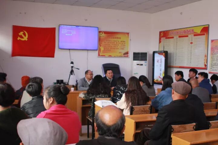 在大杜庄村,孙海东老师从对农村的印象谈起,指出“党为人民服务,得到人民拥护”,并谈到村干部要落实十九大精神,发挥党员战斗堡垒作用,重在做实事。孙老师还就精准扶贫、“两个一百年”奋斗目标等进行了详细讲解。陈永刚老师谈到,党的十九大报告提出“坚决打赢脱贫攻坚战”就是要“确保到2020年我国现行标准下农村贫困人口实现脱贫,贫困县全部摘帽,解决区域性整体贫困,做到脱真贫、真脱贫。”这个目标的实现需要每位党员带头干、加油干。陈老师还就十九大报告中社会主要矛盾的转化、十八大以来农村的变化发展等进行了交谈。