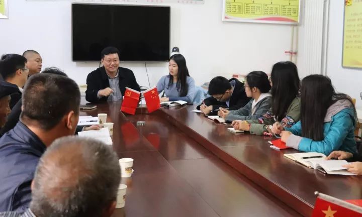 在大杜庄村,孙海东老师从对农村的印象谈起,指出“党为人民服务,得到人民拥护”,并谈到村干部要落实十九大精神,发挥党员战斗堡垒作用,重在做实事。孙老师还就精准扶贫、“两个一百年”奋斗目标等进行了详细讲解。陈永刚老师谈到,党的十九大报告提出“坚决打赢脱贫攻坚战”就是要“确保到2020年我国现行标准下农村贫困人口实现脱贫,贫困县全部摘帽,解决区域性整体贫困,做到脱真贫、真脱贫。”这个目标的实现需要每位党员带头干、加油干。陈老师还就十九大报告中社会主要矛盾的转化、十八大以来农村的变化发展等进行了交谈。