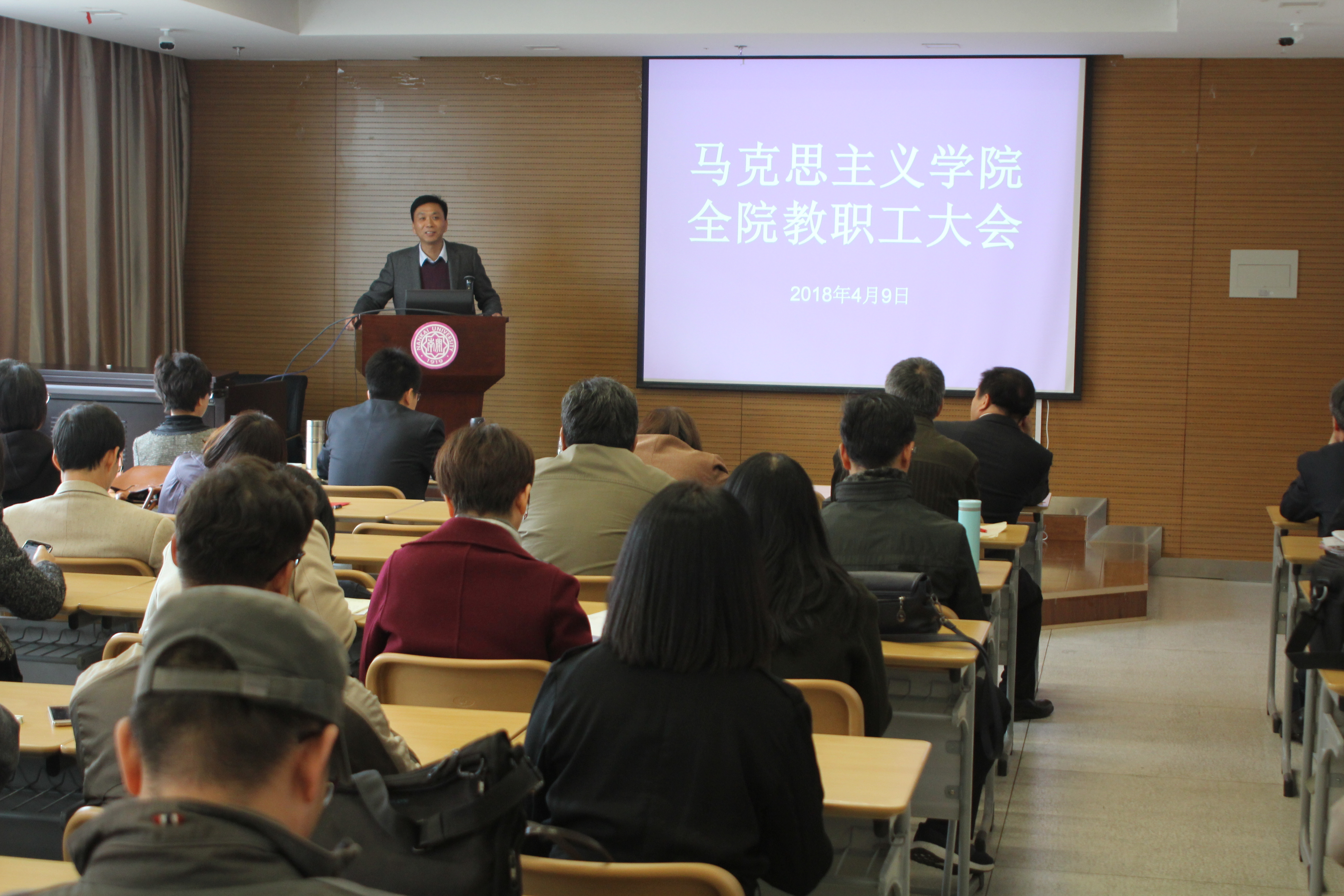 4月9日,马克思主义学院党委召开党员大会。会议由学院党委书记付洪主持,全体在校党员参加。随后召开学院教职工大会,全体在校教职工参会。