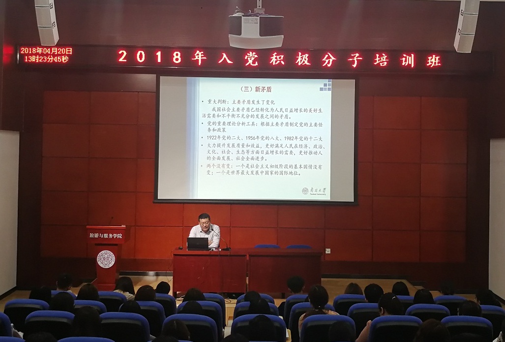 4月20日,由马克思主义学院、哲学院、旅游与服务学院和汉语言文化学院联合开展的2018年积极分子培训班正式开班。第一次集中培训由马克思主义学院副教授肖光文作“开启新时代,迈向新征程——十九大报告精神解读”专题辅导报告,来自四个学院的150余名入党积极分子参加了培训。