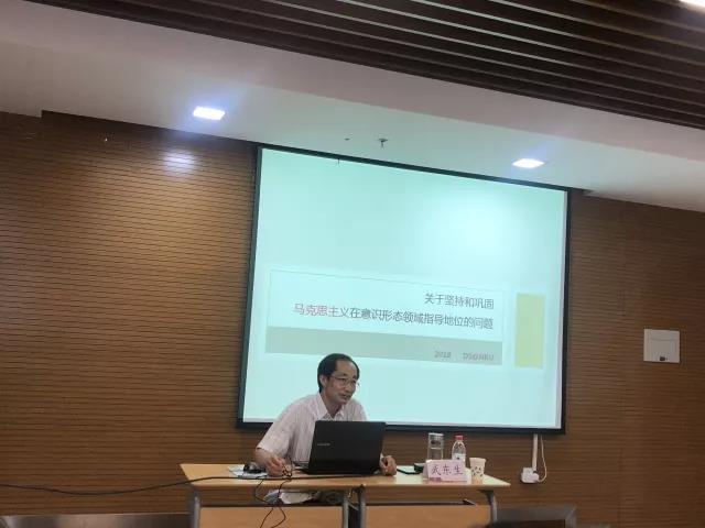 武东生教授就“关于社会主义意识形态建设的几个问题”,从为什么说“意识形态工作”是党的一项极端重要的工作、四十年来意识形态领域的变化及当前的形势和任务、坚持和巩固马克思主义在意识形态领域的地位三个方面内容与在座营员开展了交流。并对意识形态领域出现的“问题”提出了“坚持历史唯物论的基本立场,解决好现实生活中的问题”、“坚持和发展马克思主义”、“做好新形势下宣传思想工作”、“科学应对互联网提出的挑战”四点应对策略。