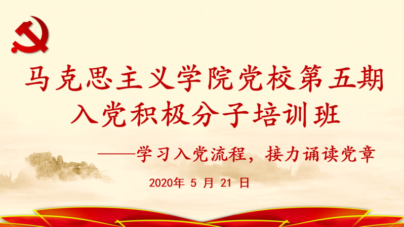 为增进入党积极分子对党的认识,加强其党性修养,马克思主义学院党校于5月21日通过腾讯会议平台举办了“学习入党流程,接力诵读党章”活动。党校培训部杨冬至主持活动,40名入党积极分子参加活动。