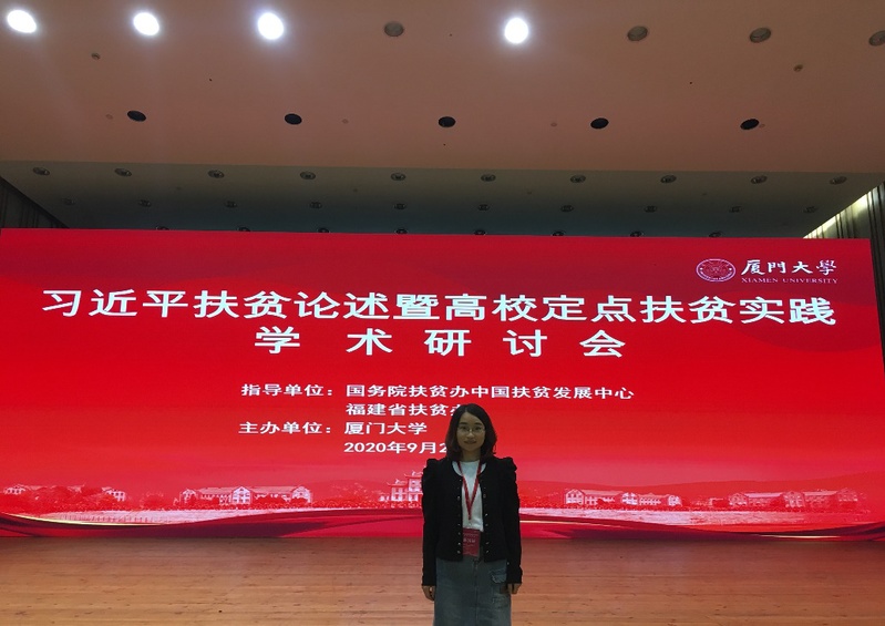 2020年9月24日至28日,由国务院扶贫办中国扶贫发展中心、福建省扶贫办指导,厦门大学主办的“‘习近平扶贫论述暨高校定点扶贫实践’学术研讨会”在厦门大学圆满召开。来自国务院扶贫办、国家发改委、yl12311线路检测、浙江大学、吉林大学、山东大学、暨南大学、华中科技大学、北京师范大学、宁夏大学、山东菏泽扶贫办、贵州省委党校、江西省委党校、厦门大学等单位的近百名领导和专家学者与会。我院2018级党的建设专业博士研究生孙艳美受邀参会,并在分论坛三中作了题为《脱贫攻坚实践所蕴含的辩证思维》的主题发言。