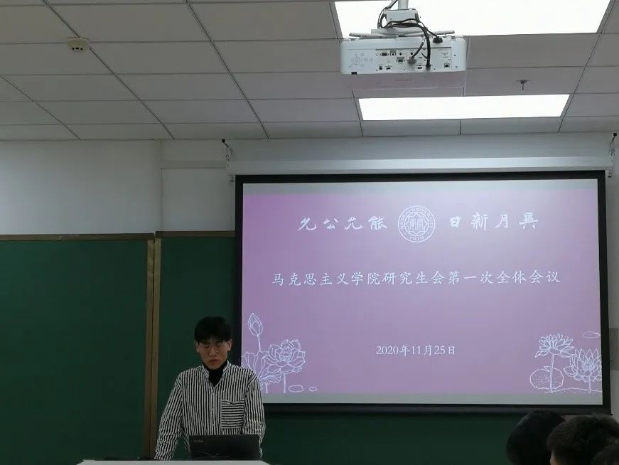 2020年11月25日晚,马克思主义学院研究生会第一次全体会议于学院208教室召开,会议由马克思主义学院研究生会主席杨宗然主持,全体研究生会成员参加了会议。