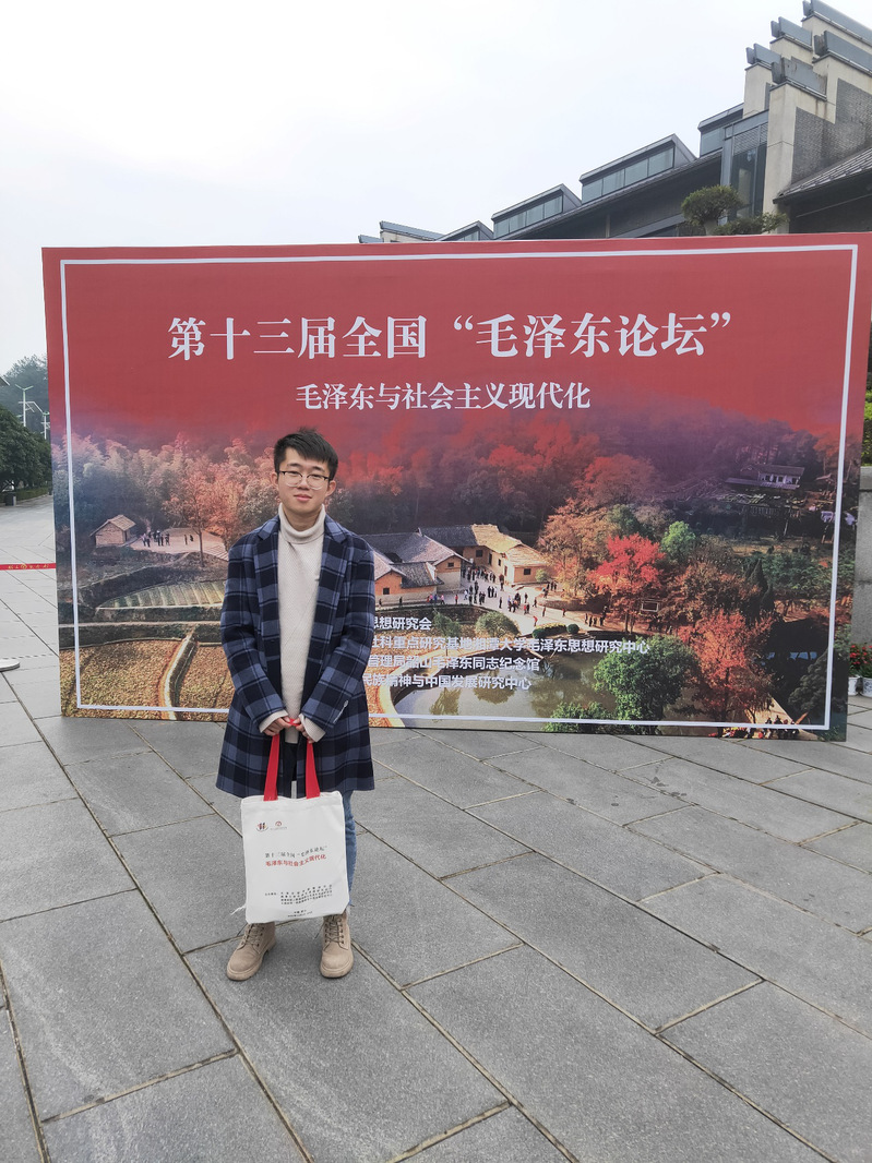 2020年12月19日,由毛泽东哲学思想研究会、教育部人文社科重点研究基地湘潭大学毛泽东思想研究中心、湖南省韶山管理局毛泽东同志纪念馆等单位联合主办的第十三届全国“毛泽东论坛于湖南省韶山市韶山宾馆召开,来自中国社会科学院大学、中央党校(中国行政学院)、清华大学、北京大学、复旦大学、武汉大学等高校和科研机构以及《人民日报》《思想理论教育导刊》《毛泽东研究》等媒体的将近200位专家学者参会。我院青年教师王元、硕士生赵赟受邀参会。