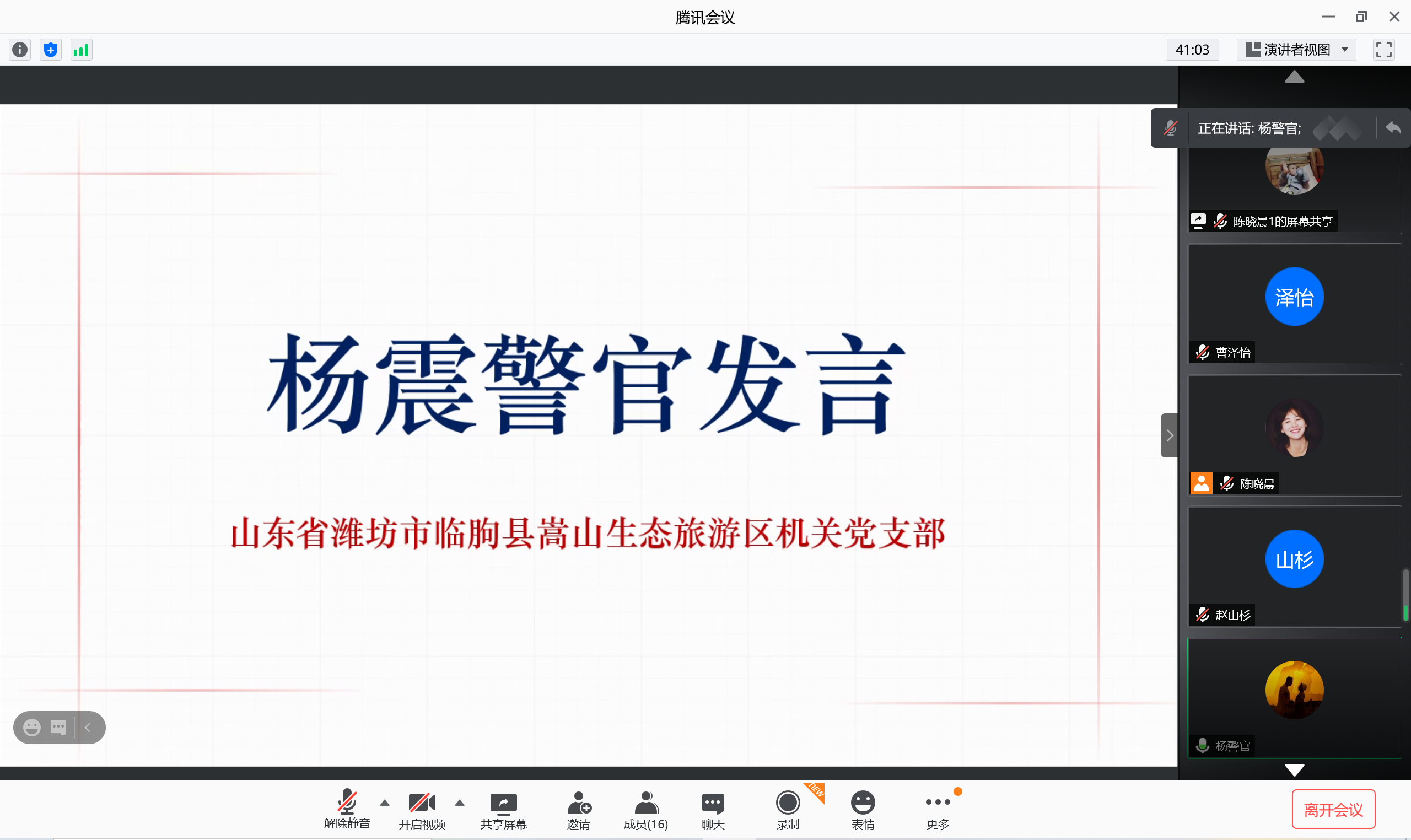 2021110日是我国第一个中国人民警察节。为致敬人民警察,进一步了解其日常工作,加强学生党员责任担当意识,学院2020硕士知行班党支部与山东省潍坊市临朐县公安局特巡警大队党支部山东省潍坊市临朐县嵩山生态旅游区机关党支部联合开展主题党日活动。活动由知行班党支部书记陈晓晨主持。