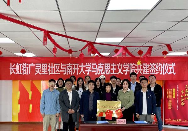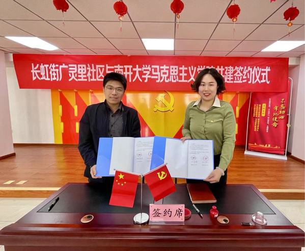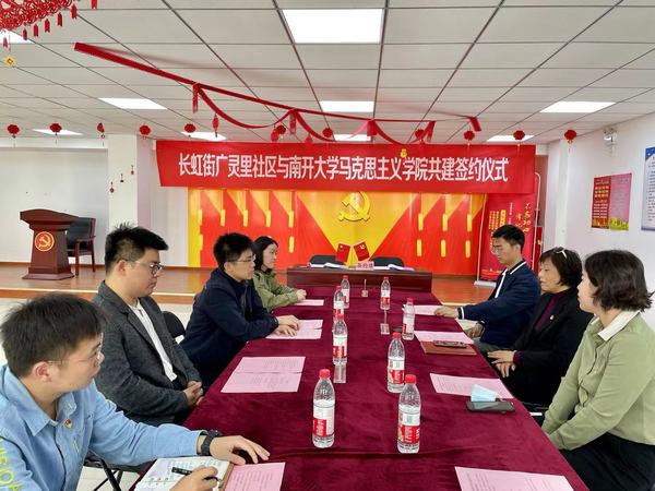 为深入推进“四史”学习教育,着力培养知行合一、公能兼备的学生党员,4月18日学院与天津长虹街道广灵里社区基层党支部在临渭佳园签订共建协议。天津长虹街道办事处主任李颖,广灵里社区党委书记刘盼、党委副书记董旭东,学院党委副书记副院长刘一博、党委专职组织员殴喜乐出席活动,2020级硕士生新民班支部党员参与活动。