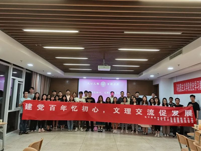 历史是最好的老师,中国共产党的历史是中国近现代以来历史最为可歌可泣的篇章,历史在人民探索和奋斗中造就了中国共产党,中国共产党团结带领人民又造就了历史悠久的中华文明新的历史辉煌。2021年5月30日晚,为了庆祝中国共产党百年华诞,讴歌党的光辉业绩,增进同学们对党史基本知识的了解,同时促进文理交流,马克思主义学院、法学院与电子信息与光学工程学院三个学院的研究生会联合举办了“建党百年忆初心,文理交流促发展”的主题交流活动,本次交流活动在马克思主义学院113教室举行。