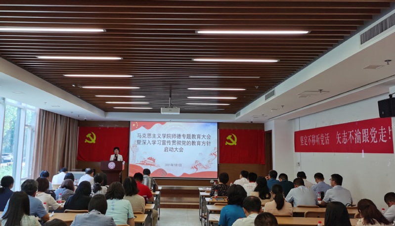 为全面深入贯彻习近平总书记关于教育的重要论述和讲话精神,学习宣传贯彻党的教育方针理念,进一步加强师德师风建设,落实立德树人根本任务,增强全体教师的责任感和使命感,日前,马克思主义学院师德专题教育大会暨深入学习宣传贯彻党的教育方针启动大会在学院113教室召开。