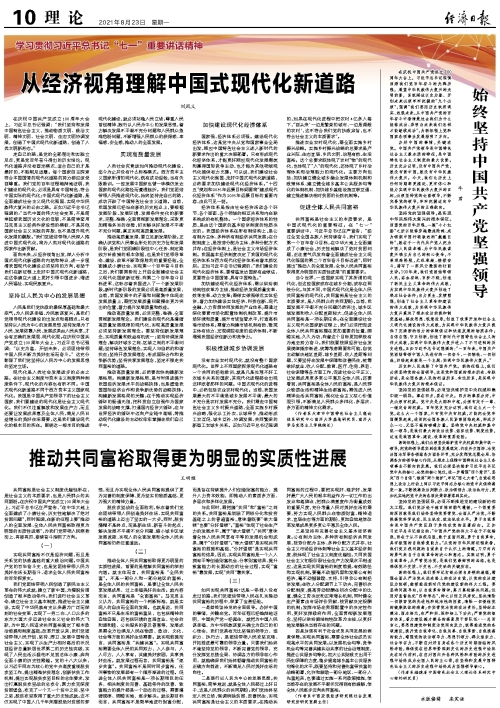 面向未来,从经济视角出发,深入分析中国式现代化新道路的内涵和特点,进一步厘清我国现代化建设必须坚持的方向,有助于我们在新征程上走好中国式现代化新道路,在这条康庄大道上更好引领中国进步、增进人民福祉、实现民族复兴。