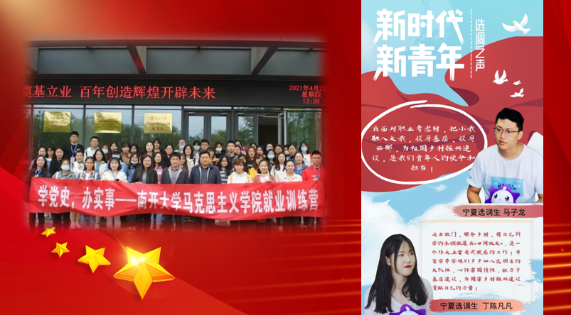 本届就业培训营结合学院专业特色,立足学生就业需求,下设“思政之星”、“乡土中国,服务基层”两大分营,参营人数共计72人,其中“思政之星”训练营营员人数41人,“乡土中国 服务基层”公考选调训练营人数31人,覆盖本硕博各个年级。另外,还有如法学院、哲学院等跨学院学子也积极参与了此次活动,活动参与度较高。“思政之星”训练营针对同学真实诉求,开展了一系列富有针对性的活动,先后邀请在高校,中学思政一线工作的优秀教师来进行经验分享和答疑解惑,同时坚持理论与实践相结合,积极协调安排同学们前往天津市各所中学进行亲身实习,并通过模拟课堂来检验学习成果,取得了良好的成果。同时,“乡土中国 服务基层”公考选调训练营围绕“选调公考”与“企业培训”两大主题,自4月22日开营以来积极筹备组织了六次形式多样,内容充实的培训活动。训练营结合讲座,参观访问,实习与社会实践等多种形式切实提高学生就业能力。暑期同时开展学生赴天津市河东区团委挂职实习工作和“青春在基层绽放”高校选调生助力乡村振兴情况调研、在宁选调生校友座谈会等实践活动,鼓励学生走出学校,参与社会,提高思想觉悟,增强实践经验。本届就业培训营在各位老师的支持和指导下,全体工作人员的努力和营员们的积极配合下,圆满结束。