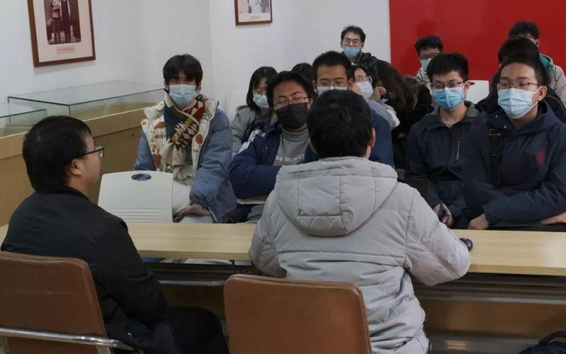在参观完觉悟社旧址和女星社旧址后,社团成员在活动室开展团课。社团骨干叶杨军带领大家梳理了觉悟社与yl12311线路检测的关系,百年觉悟与百年南开同步,光荣的爱国主义传统是南开的坚强底色;他向大家介绍了青年周恩来的思想选择历程,从“为中华之崛起而读书”到“相会于中华腾飞之时”再到“我认的主义是一定不变了”,青年周恩来最终确立了共产主义信仰。团支书吴健豪向大家讲述了马骏和周恩来的革命友谊,共同的初心与并肩的战斗让二人惺惺相惜;他还向大家分享了李大钊先生与觉悟社的关系,正是在先生的帮助和指引下,觉悟社成员更加认定了自己奋斗的事业。
