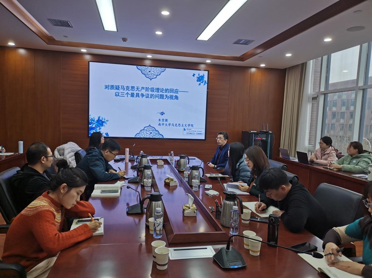 12月9日,马克思主义学院“双周学术沙龙”第六期在321教室举行,我院朱雪微副教授作了题为“对质疑马克思无产阶级理论的回应——以三个最具争议的问题为视角”的专题报告。本次沙龙由马克思主义学院副院长王生升教授主持。