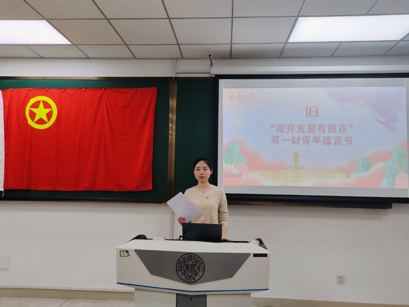 随后,团员们共同填写“南开发展有我在”建言书,从专业培养、校园文化、后勤服务、党团班一体化建设等多个方面积极为学校发展、共青团建设建言献策。团员们纷纷表示,要积极响应号召,带头学习会议精神,勇于担当责任使命,勤学苦读,立公增能,以实际行动回应“南开发展有我在”的号召,为奋力谱写南开品格、中国特色、世界一流大学内涵式高质量发展新篇章做出自己的贡献。