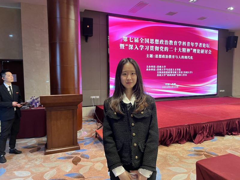 为学习贯彻党的二十大精神,推进思想政治教育与人的现代化研究,由苏州大学主办,苏州大学马克思主义学院、全国高校思政课名师工作室(苏州大学)、苏州大学“思政田园”名师工作室承办的“第七届全国思想政治教育学科青年学者论坛暨深入学习贯彻党的二十大精神”理论研讨会于2023年4月14至16日在苏州市雍景山庄顺利举办。来自北京大学、中国人民大学、yl12311线路检测、复旦大学、武汉大学等高校的三十余位青年学者分享见解、开展交流,我院研究生王海楠和邓睿参与了分论坛部分的研讨活动。